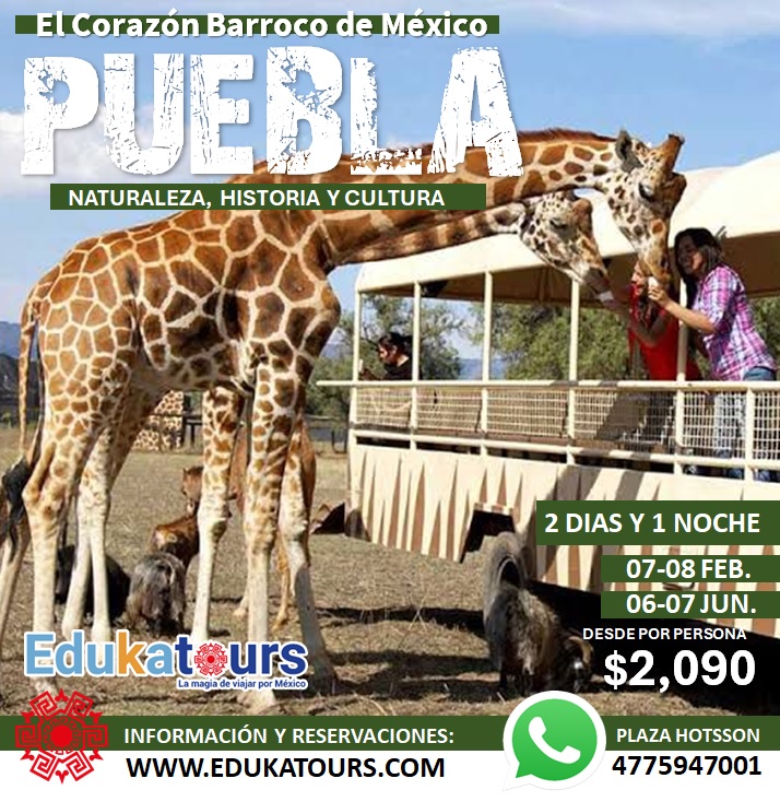 - 06 al 07. Jun. Puebla y Africam Safari.