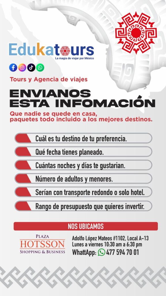 Envianos esta informacion a nuestro WhatsApp para ofrecerte tus mejores vacaciones: (Clic aquí)
