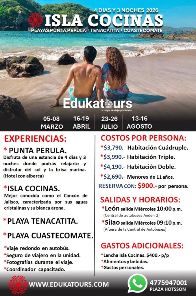Isla Cocinas uno de los paisajes más puros y hermosos en Jalisco es un parador turístico como muy pocos en el mundo justo frente a Punta Perula, pues se trata de una pequeña playa virgen en Jalisco de blanquísima arena y cristalinas aguas turquesa ideal para actividades como nadar, bucear y pasear en kayak.