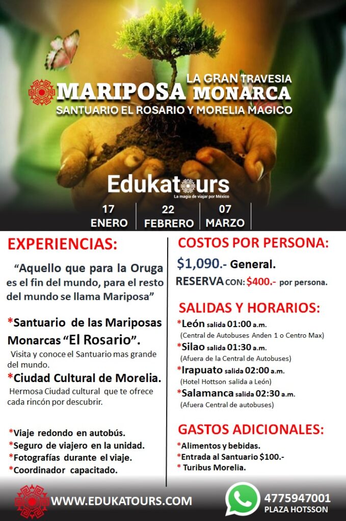 Cabe mencionar que la temporada de la Mariposa Monarca en el Santuario de El Rosario comienza a partir del 20 de noviembre al 31 de marzo cada año, teniendo un pico de visitas de estos ejemplares entre enero, febrero y marzo que es cuando normalmente migran la mayor cantidad de Mariposas.